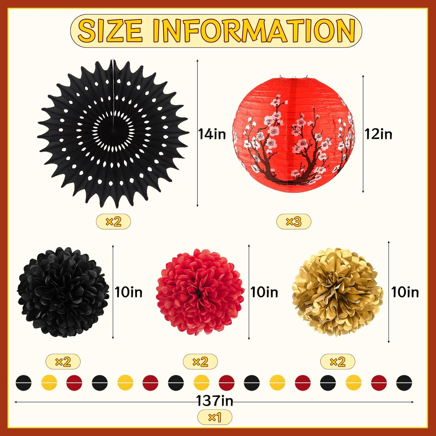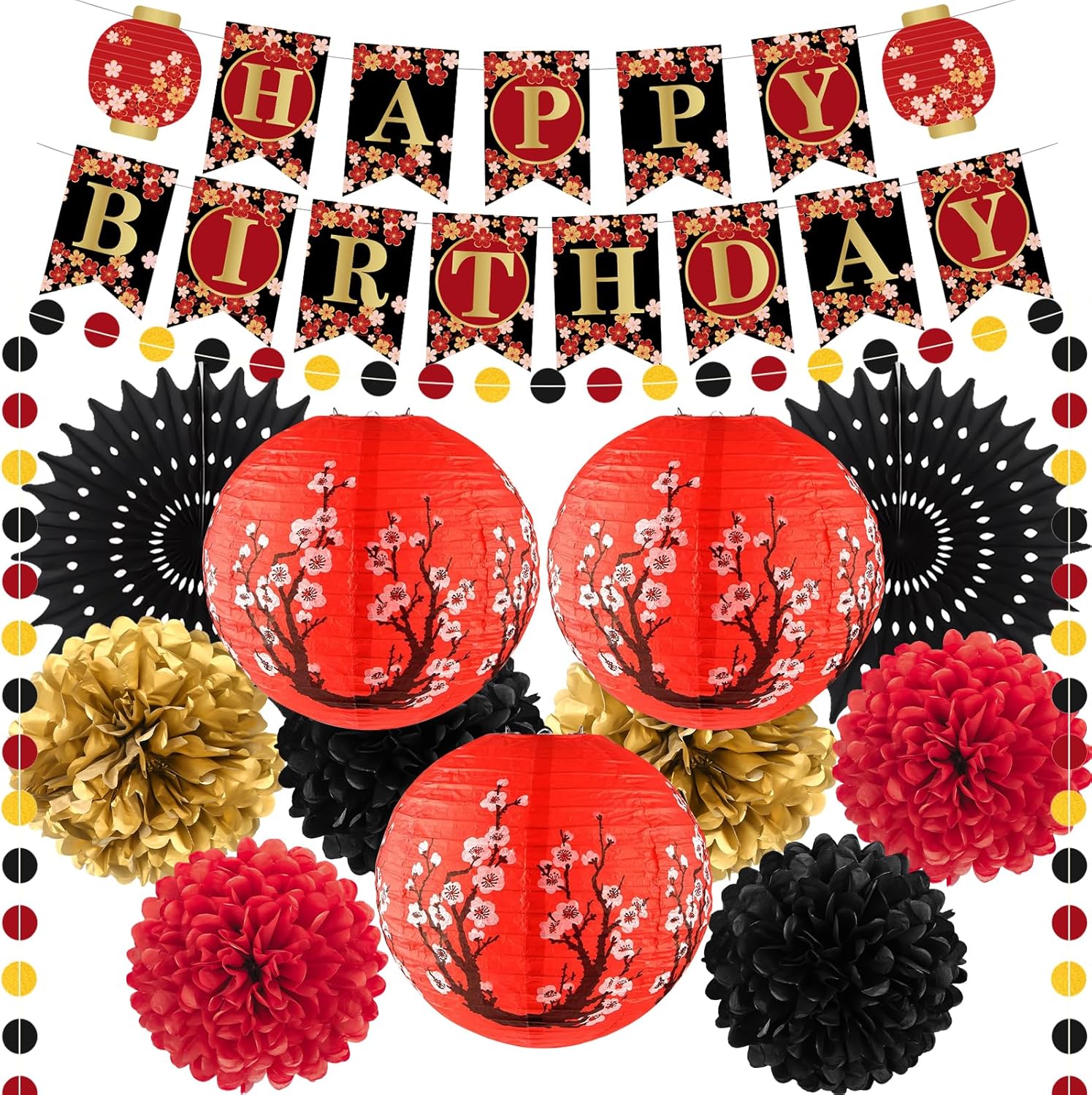 Elevate your next Hibachi celebration with this 14-piece decor kit that brings a blend of elegance and fun to any gathering. Featuring Japanese lanterns adorned with delicate cherry blossom patterns and vibrant tissue paper pom poms, this set captures the essence of traditional aesthetics while adding a modern flair to your event. Ideal for creating a memorable ambiance, itâs perfect for special occasions such as birthdays, cookouts, and themed parties.