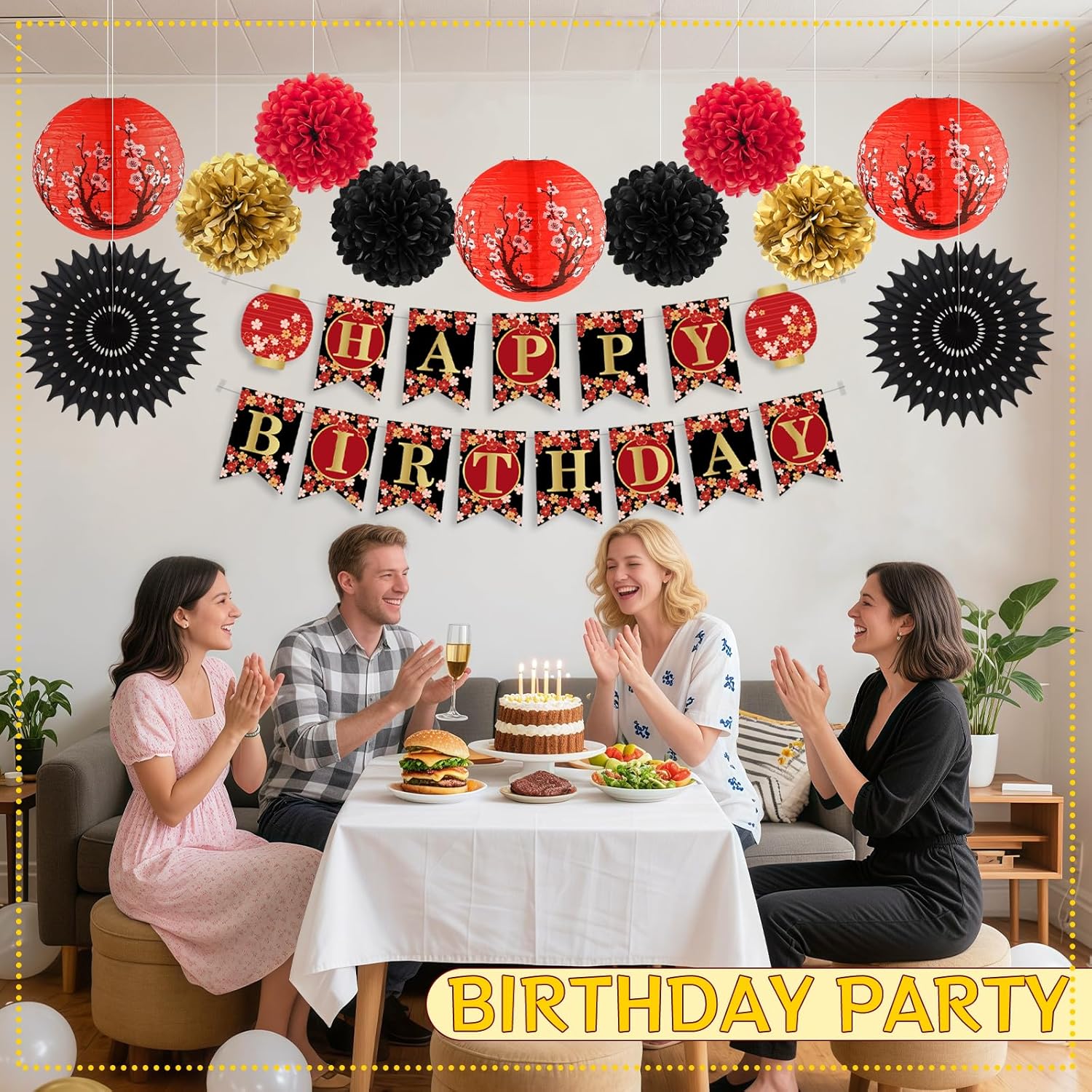 This Hibachi party decorations set is not only versatile but also easy to set up and use. The included clips and metal frames allow for quick assembly, while the durable, eco-friendly materials ensure everything holds up beautifully. Whether you're hosting a birthday, e-commerce event, or a festive gathering, the traditional black, red, and gold color scheme adds a timeless Japanese vibe, making your event visually striking and unforgettable.