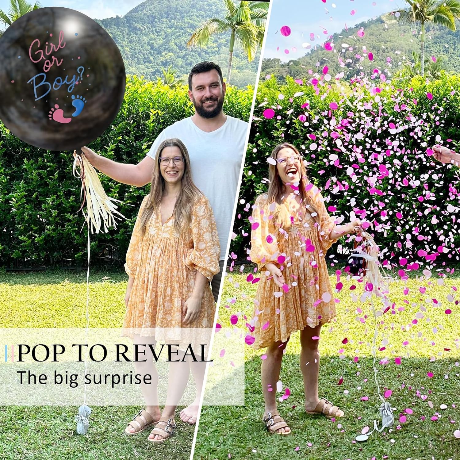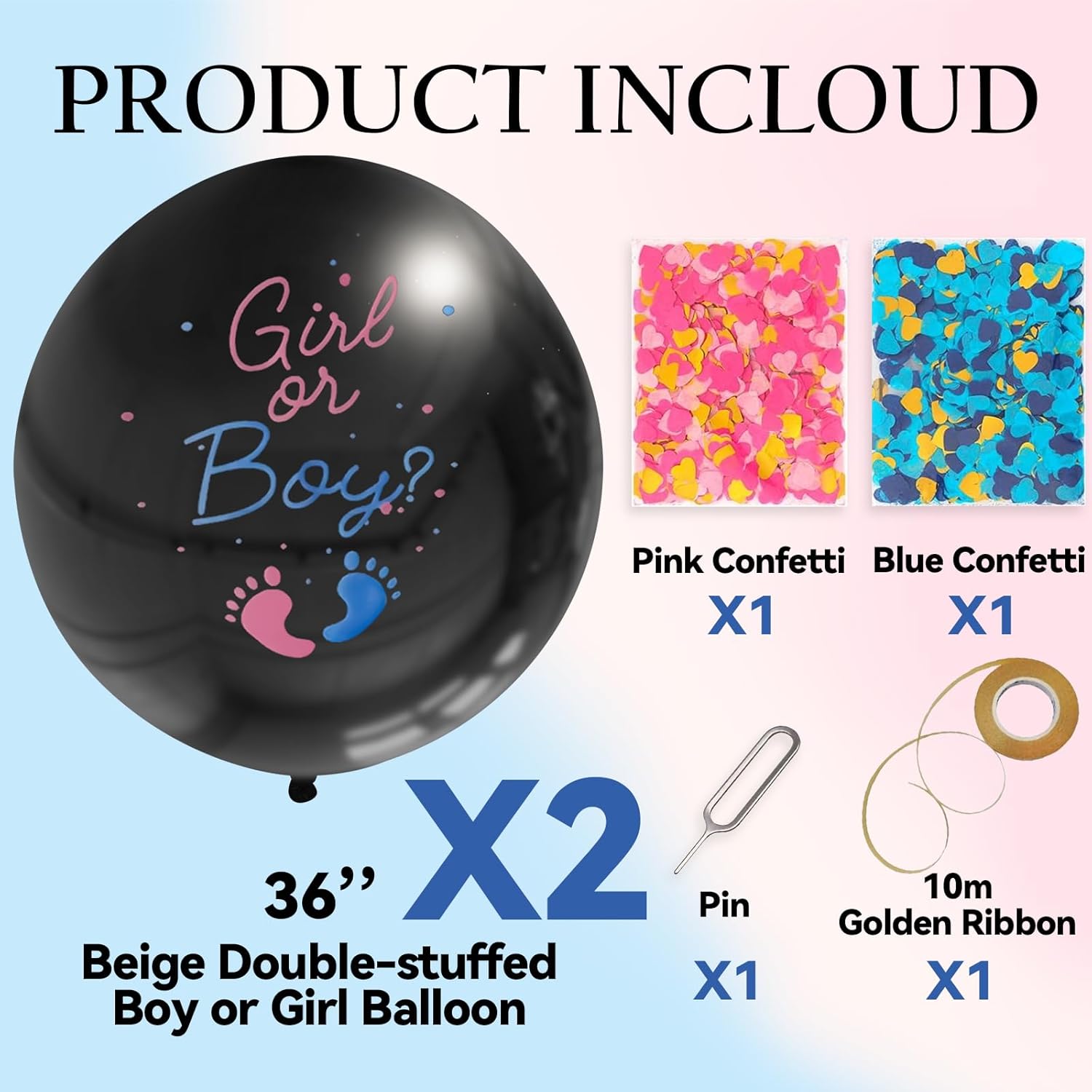 These Gender Reveal Balloons are more than just a decorationâthey're a statement. The combination of blue and pink confetti adds a unique and colorful twist to your baby shower, while the biodegradable material ensures a safe and environmentally conscious celebration. Whether you're looking for party supplies for gender reveal, baby shower decorations, or simply a way to make your event more memorable, these balloons deliver just that. Easy to use and visually impressive, they're designed to delight your guests with a surprising and joyful reveal.