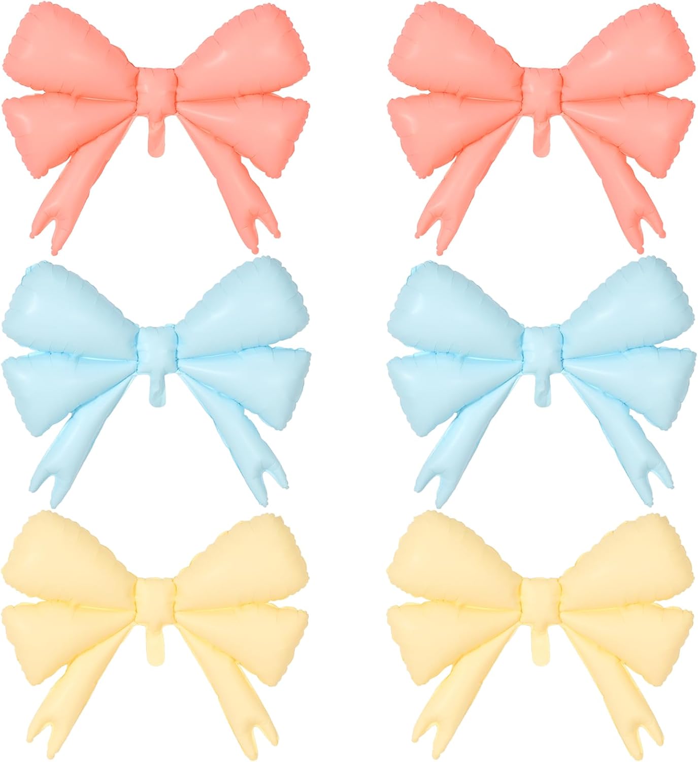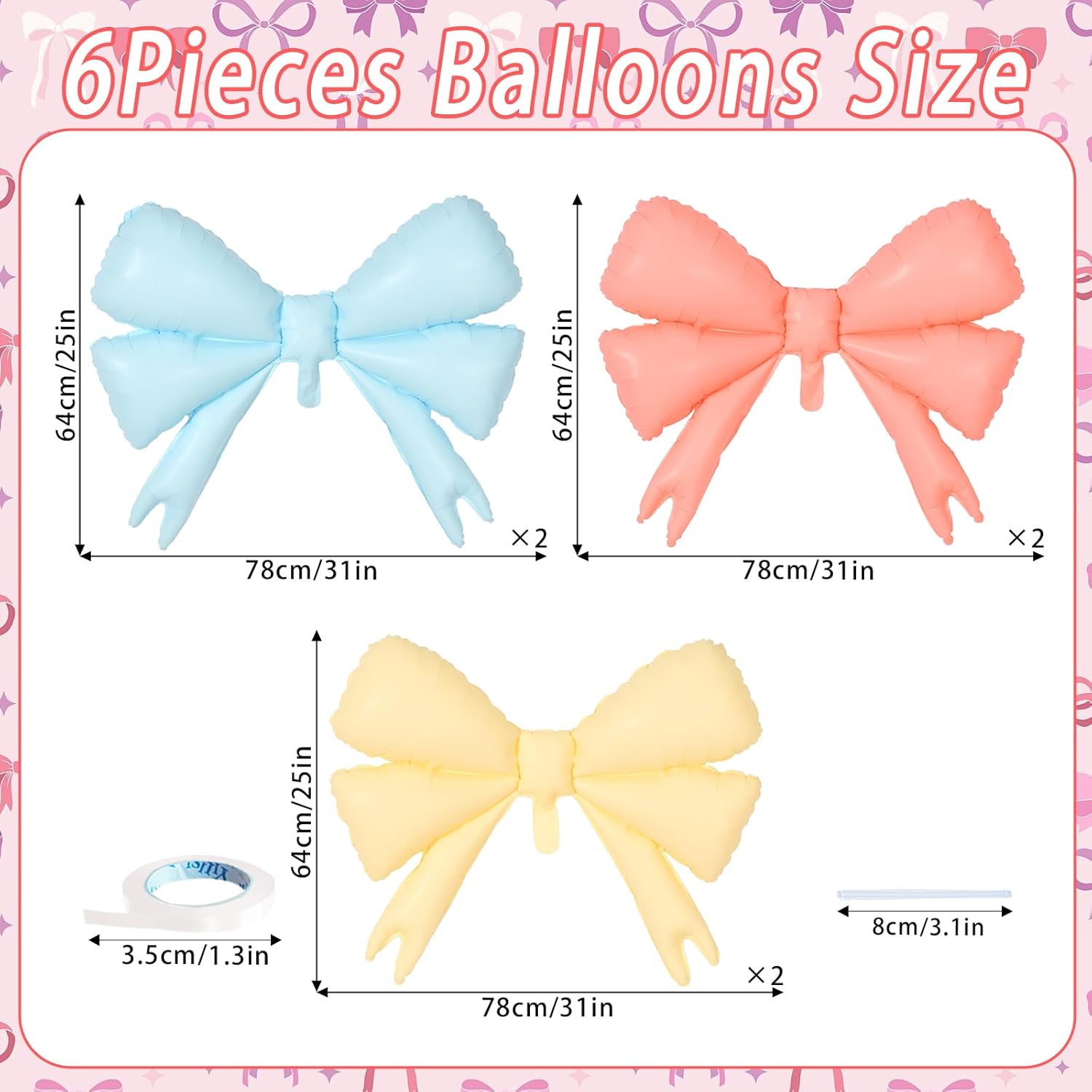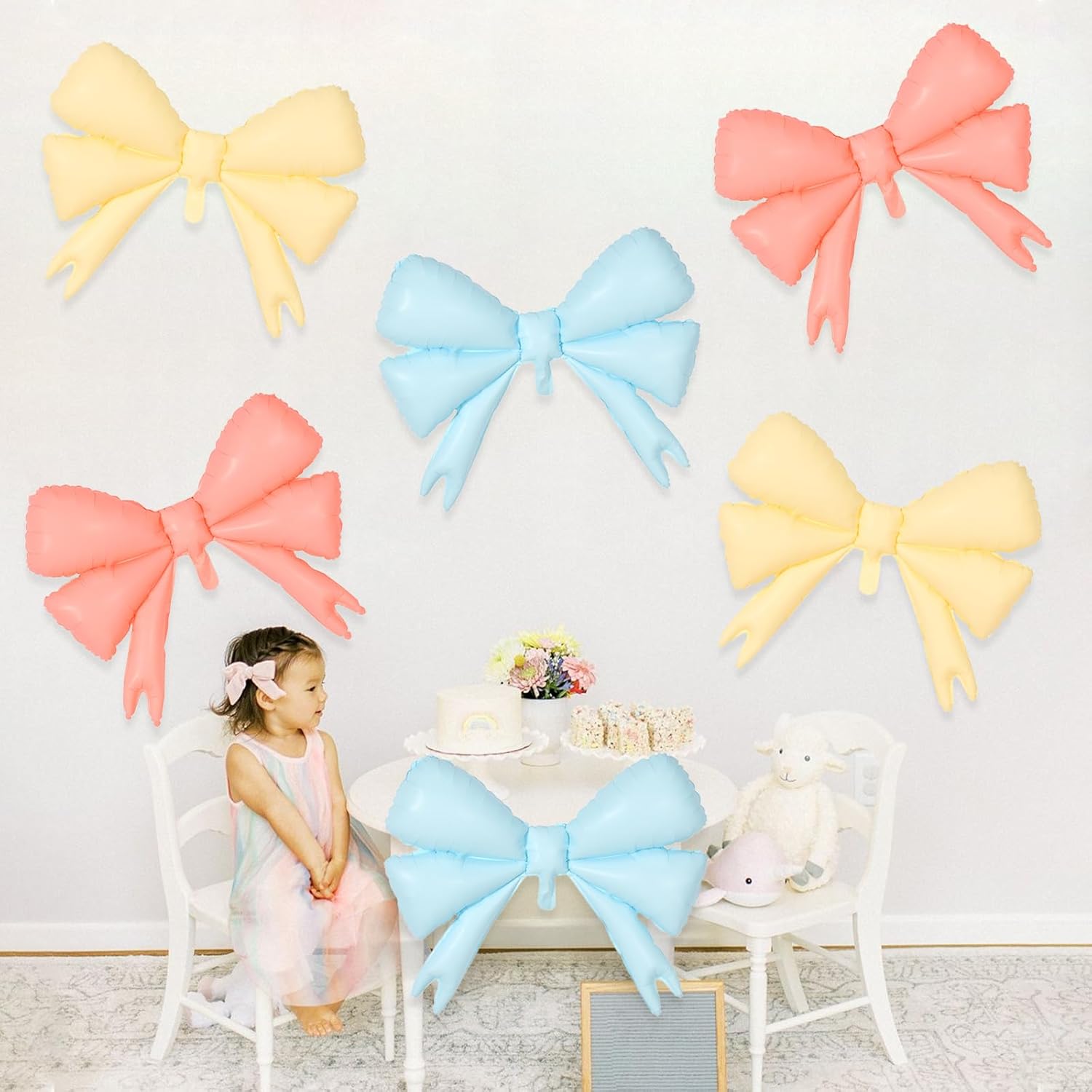 Transform your party space with these 6-piece large pink bow foil balloons. Combining vibrant shades of pink, blue, and yellow, they bring a delightful and elegant touch to any special occasion. These balloons are crafted from premium aluminum foil, ensuring durability, safety, and a long-lasting presence at your event. Their eye-catching design adds a magical ambiance to birthday parties, baby showers, weddings, and more, making every celebration feel extra special.