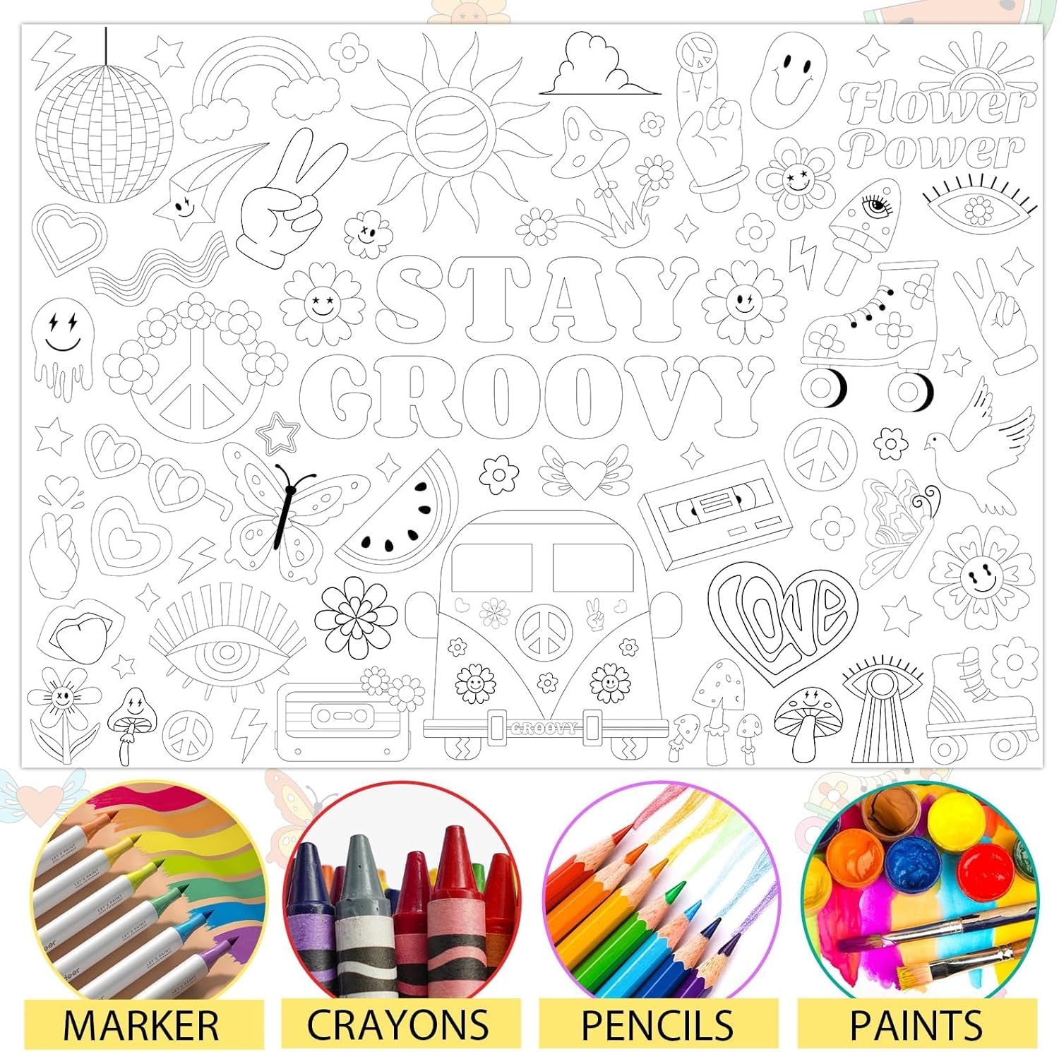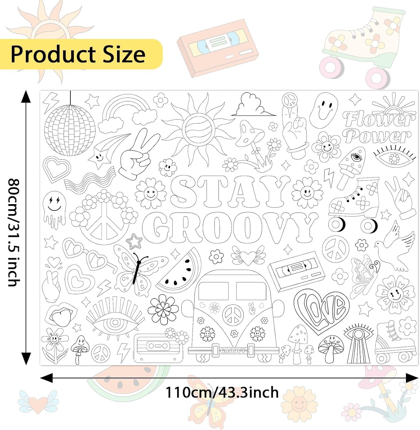 Ideal for birthdays, art classes, or family craft days, the Groovy Giant Coloring Poster is a must-have for any creative space. Create lasting memories with your kids and loved ones, while enjoying a beautiful and colorful backdrop. Durable, reusable, and endlessly entertaining, it's a great investment in fun and learning.