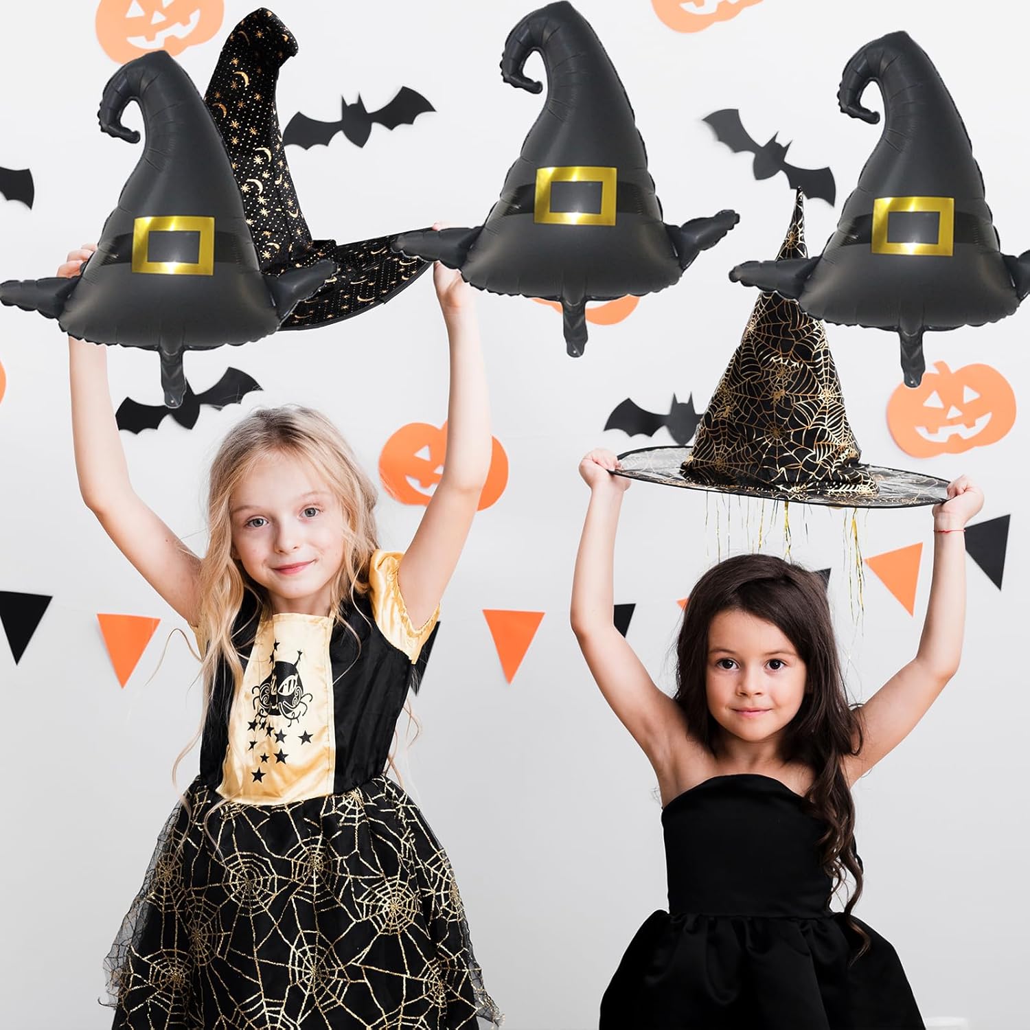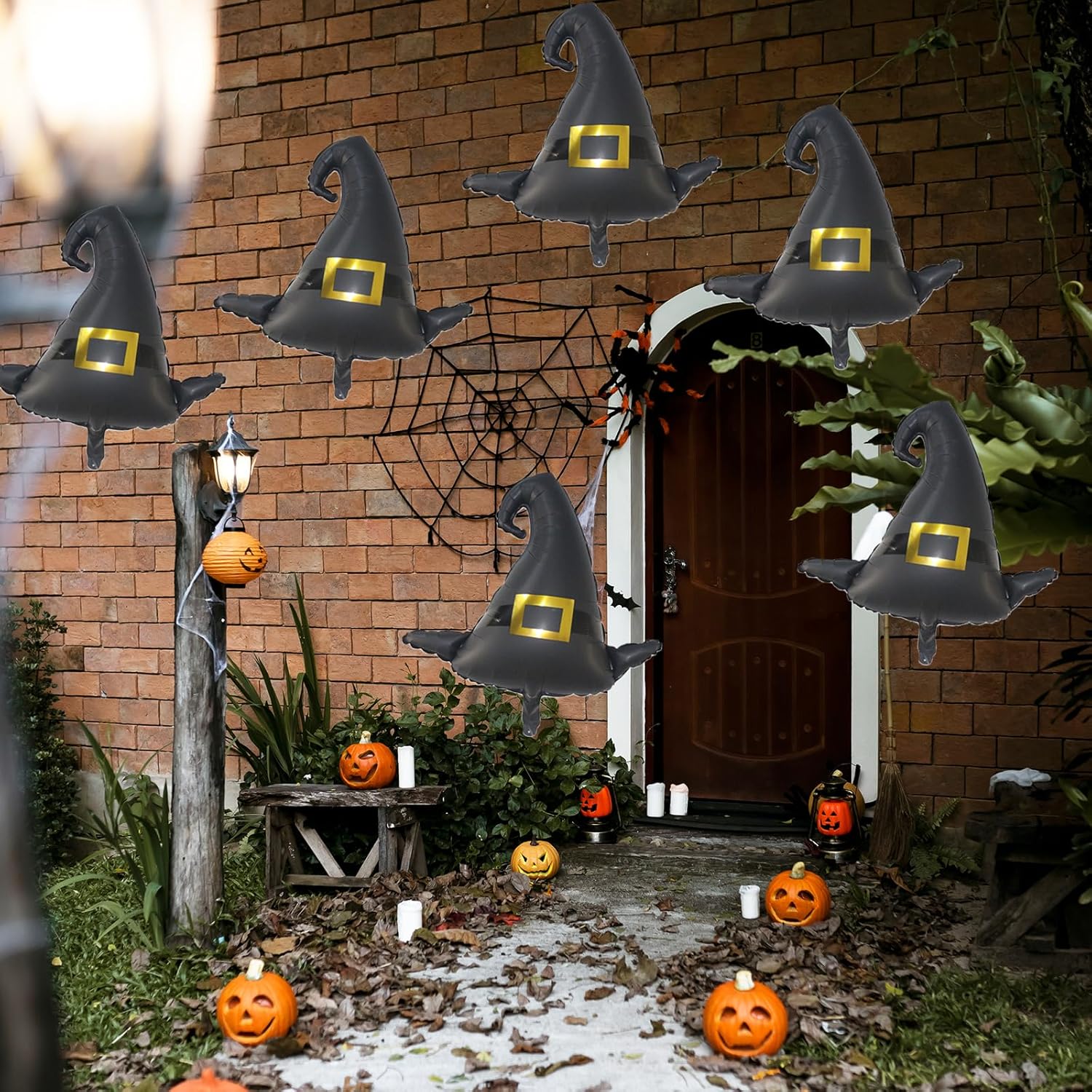 Elevate your Halloween party with these eye-catching jumbo witch hat shaped foil balloons. Designed to make a lasting impression, theyâre perfect for creating a magical and spooky atmosphere in your home or at any gathering. Whether you're hosting a themed birthday, graduation, or a conventional Halloween bash, these balloons bring a delightful touch to every event. Each balloon is crafted from premium-quality aluminum film, ensuring durability and reusability for multiple occasions. Their strong construction makes them ideal for withstanding the rigors of party setups and lasting through the festivities. The automatic sealing feature eliminates the need for knots or fraying, simplifying the setup process and saving you time. Lightweight and safe for children to handle, these balloons are an excellent choice for kid-friendly celebrations. They not only add visual appeal but also serve as fun photo props, helping you capture unforgettable memories. With their versatile design, they can be used for indoor or outdoor settings, enhancing any Halloween-themed space with a touch of enchantment. Whether you're looking for Halloween balloons, witch hat balloons, or party decorations, these are the perfect addition to create a festive and magical ambiance. Make your next celebration unforgettable with these stylish, functional, and safe decorations that bring joy to all ages.6PCS Jumbo Witch Hat Foil Balloons â Halloween Party Decorations That Spark Joy