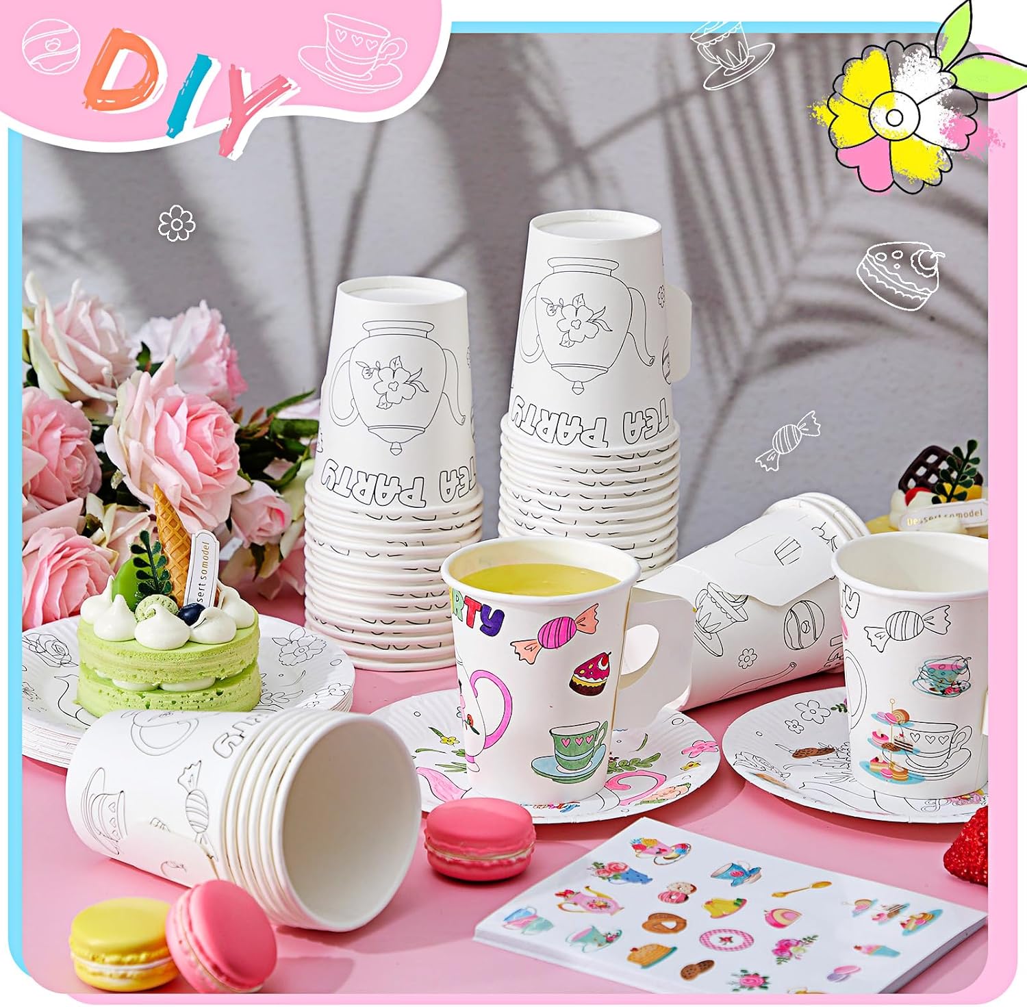 Transform any gathering into a colorful and whimsical celebration with these Lenwen tea party cups and plates. Designed with a clean white background and bold black outline patterns, they're the perfect base for personalization and creative expressions. Whether it's a birthday, Easter party, or classroom activity, these disposable pieces add a charming touch while keeping things simple and mess-free.