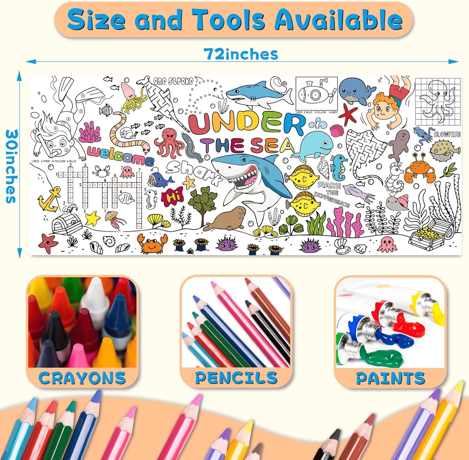 Inject fun and creativity into any event with this Ocean Theme Coloring Tablecloth and Giant Poster set. Perfect for birthdays, classroom activities, and home celebrations, it combines art and décor to create an immersive and memorable experience for kids and adults alike.