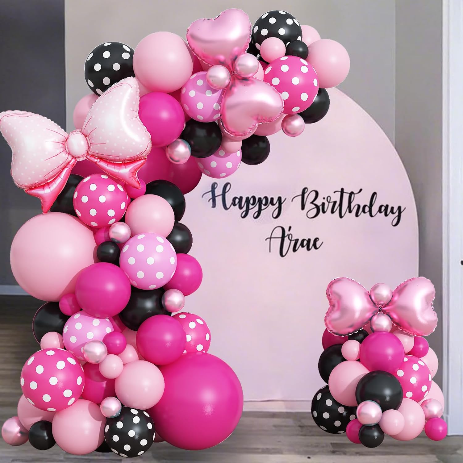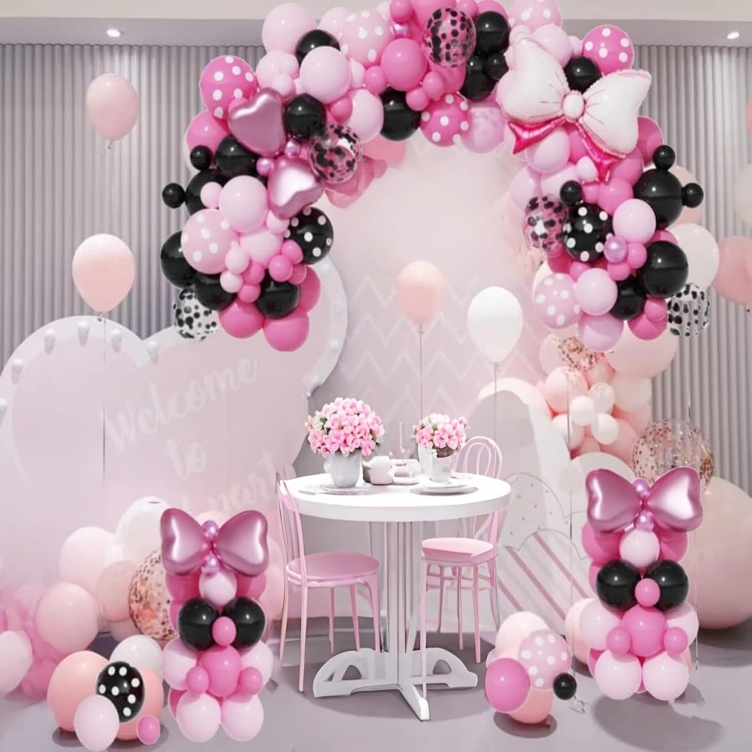 Transform your space into a celebration of fun and style with the Isndare Pink and Black Balloons Arch. This stunning decoration set blends vibrant hot pink and pastel pink balloons with bold black balloons to create an eye-catching focal point for any event. The elegant mix of colors makes it ideal for birthdays, baby showers, or bridal showers, adding a touch of sophistication and charm to your celebration. Included in the kit are a bow foil balloon, heart-shaped foil balloons, and a variety of accessories to make setup quick and effortless.