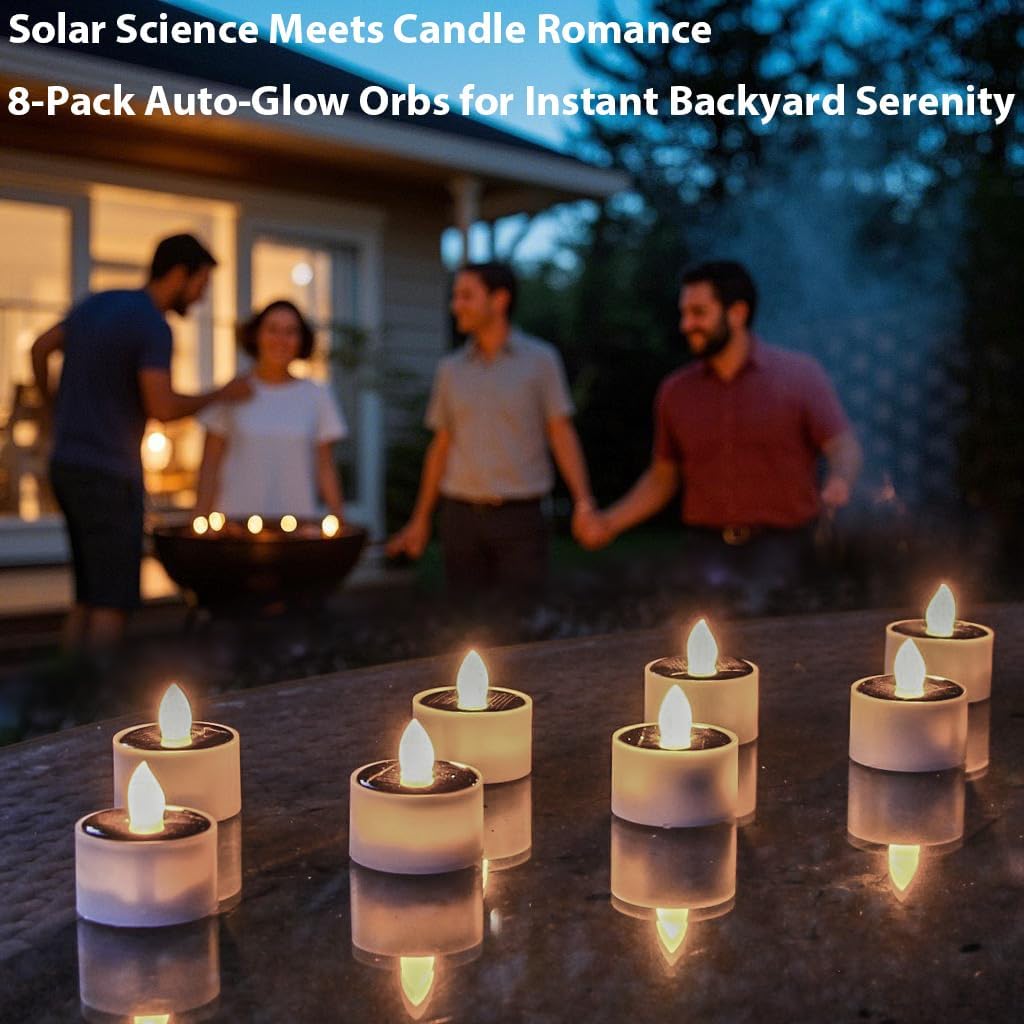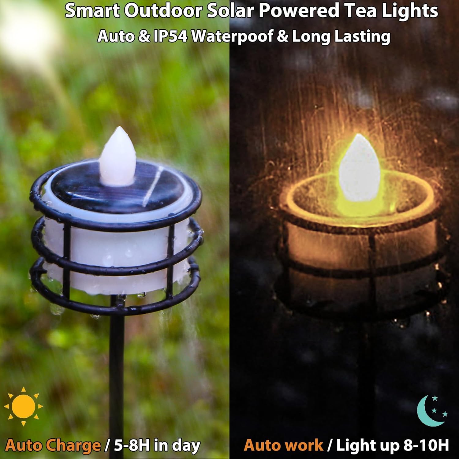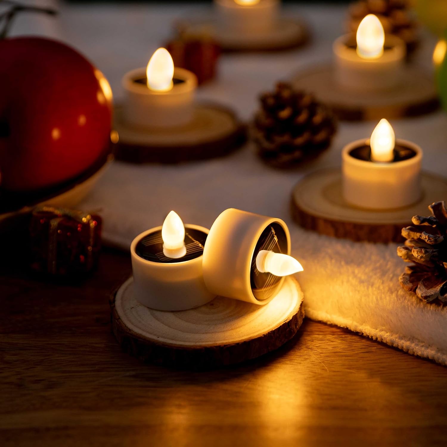 These solar-powered tea lights charge during the day and glow at night, thanks to their built-in solar panel and 10-hour battery life. The auto on/off sensor detects dusk and dawn automatically, ensuring they light up when needed and turn off seamlessly, eliminating the need for manual control. This smart feature makes them easy to use and perfect for energy-conscious homeowners who want to reduce their carbon footprint.