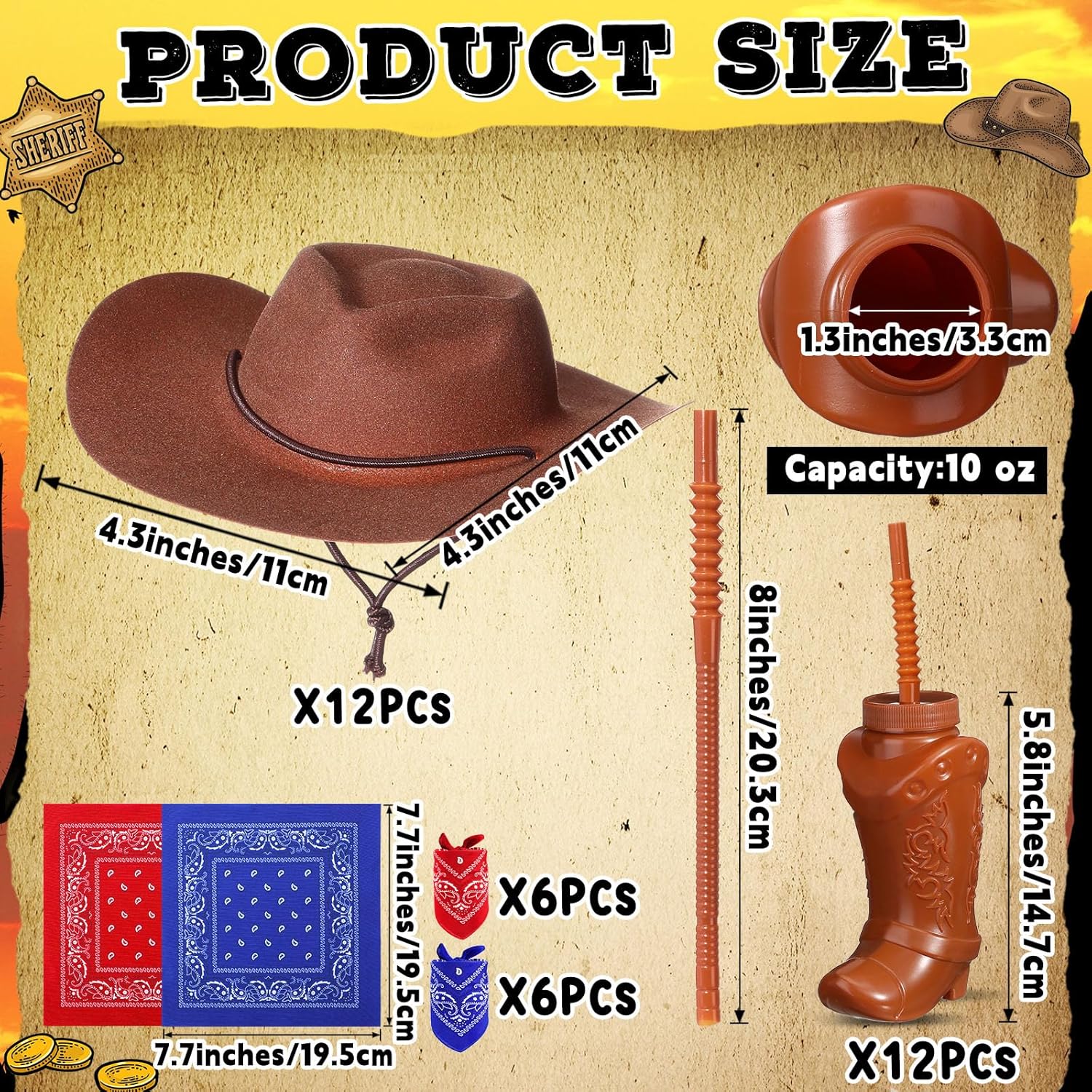 Bring rustic charm and playful excitement to your next event with this 72-piece cowboy party favor set. Perfectly designed for birthdays, themed parties, and photo booth setups, itâs a must-have for adding style and fun to your western celebration.