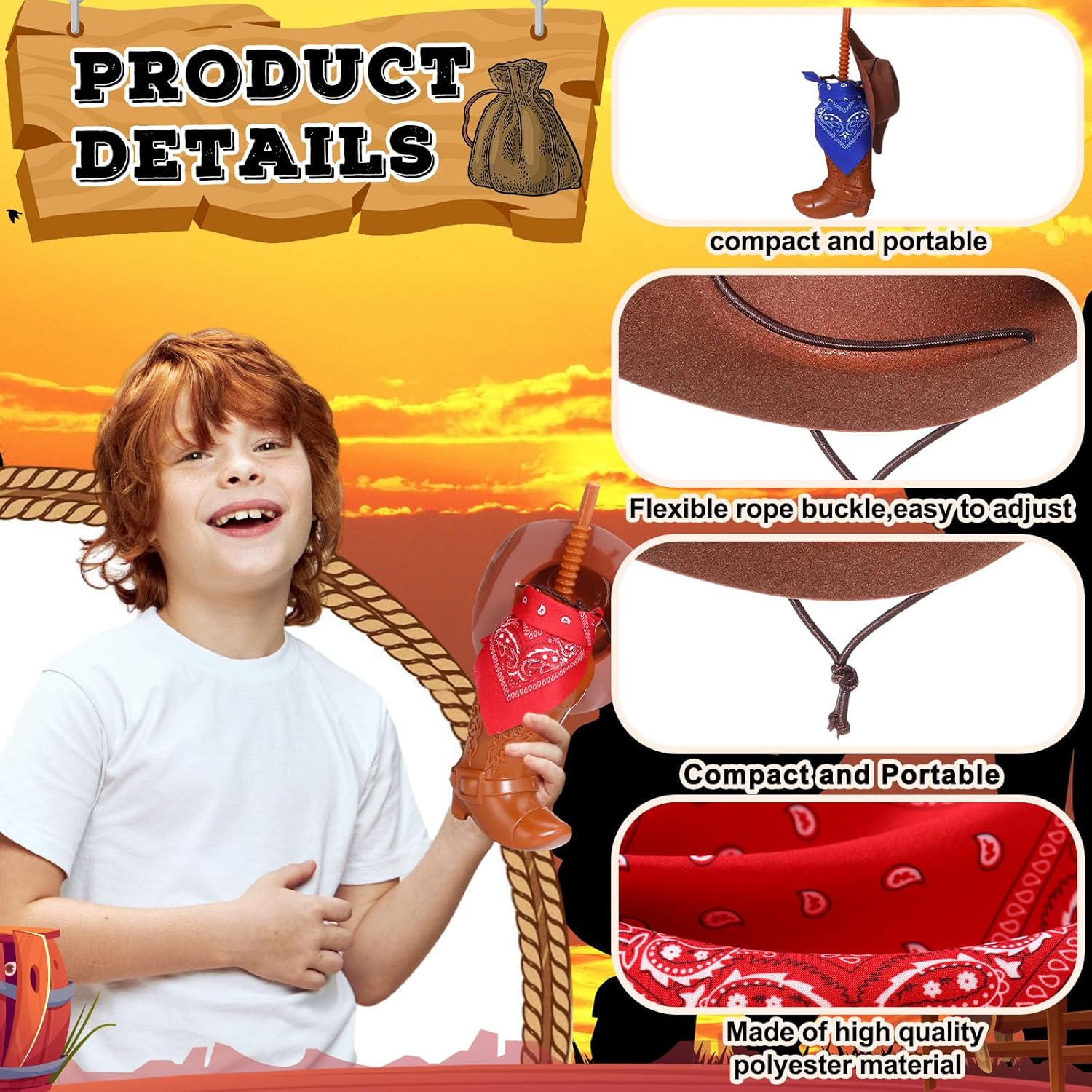 Ideal for photo booths, costume parties, or any get-together where a touch of the Wild West is welcome, this set ensures every event is memorable and stylish. Add a unique twist to your party with these charming, reusable items that are both functional and festive.