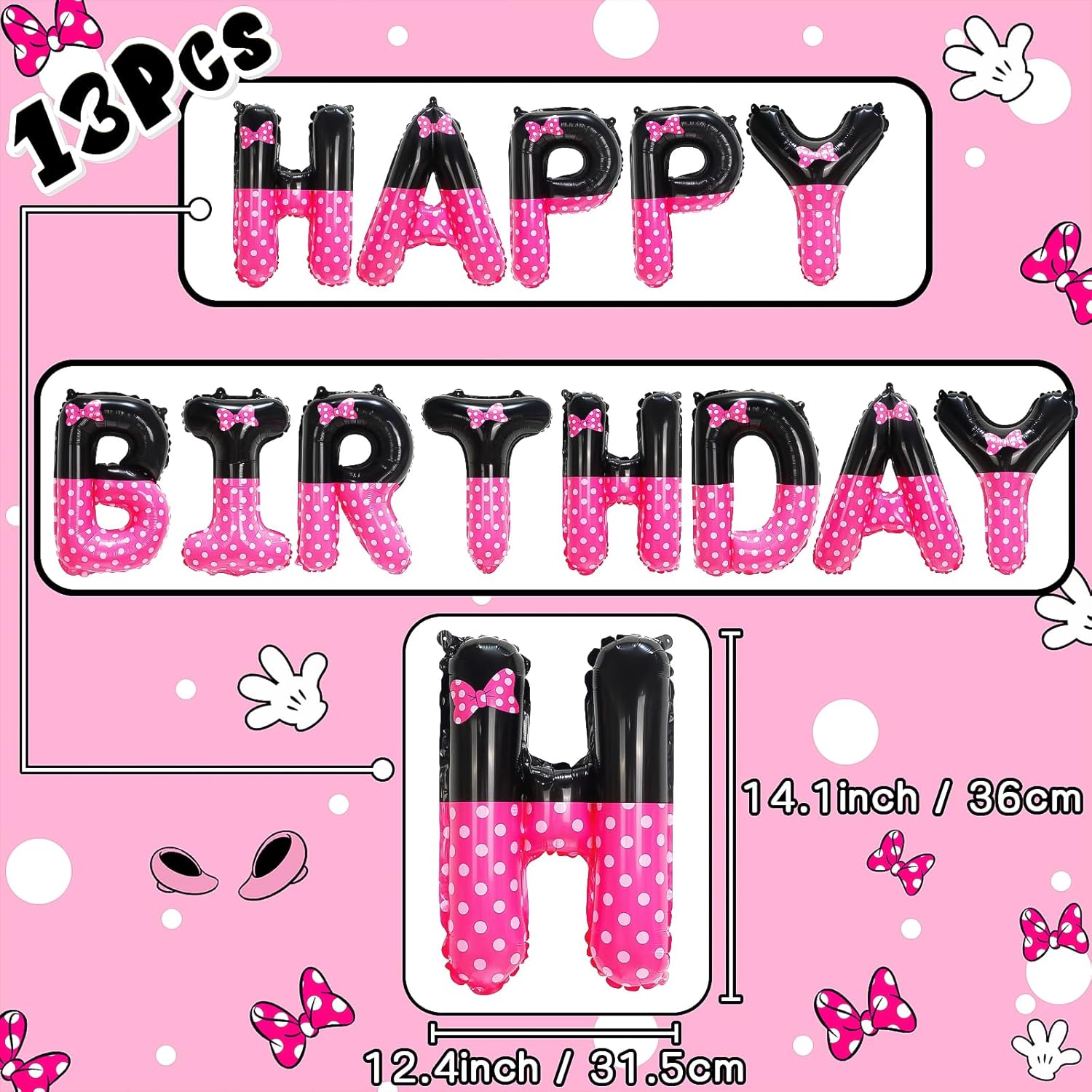 This party decorations kit covers everything you need to create a stunning and festive environment. With a complete range of 104 items, from balloons to banners, it's easy to transform any space into a magical celebration. The black and pink design, inspired by Minnie cartoon mouse elements, adds a whimsical charm that's perfect for younger guests and creates a delightful ambiance for your special day.