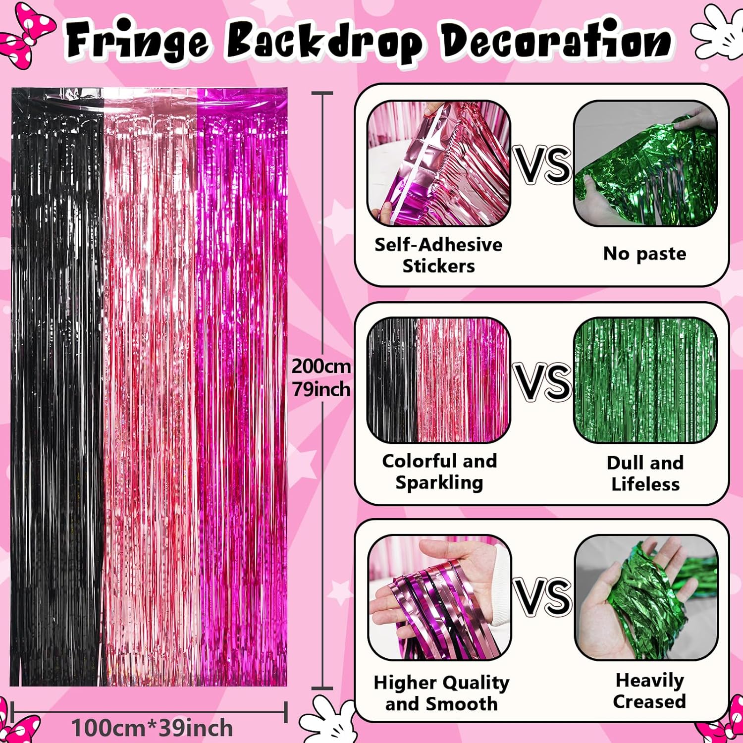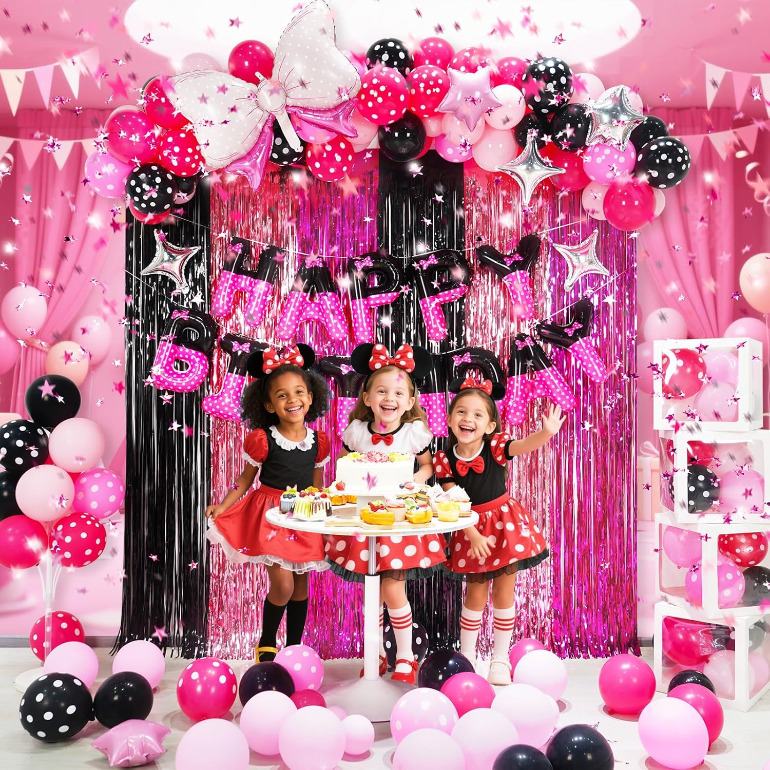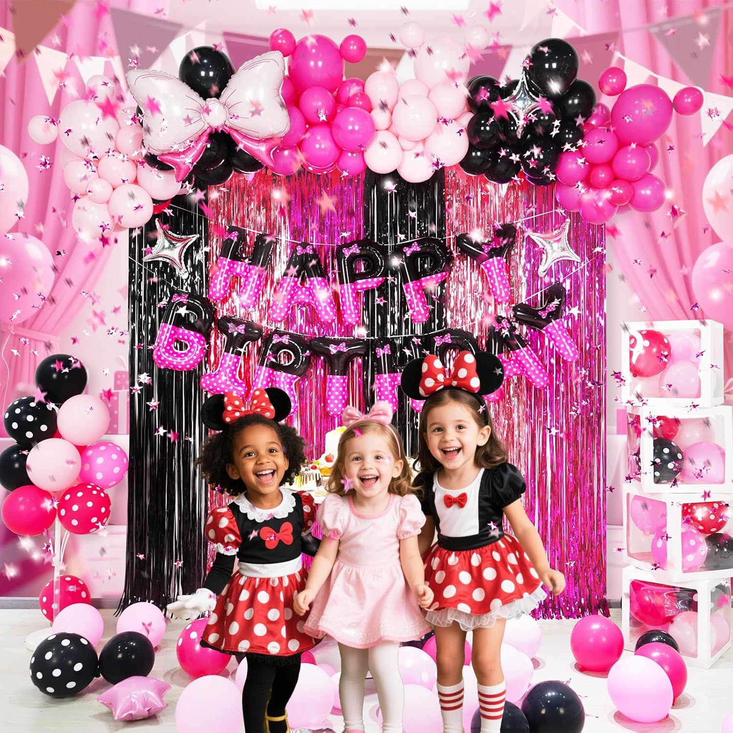 Transform your party into a colorful, cartoon mouse-themed wonderland with this versatile decorations kit. The black and pink color scheme adds a touch of elegance while the playful design ensures a lively and cheerful atmosphere. All items are designed for easy setup, making it the perfect choice for both indoor and outdoor events without the hassle of multiple purchases.