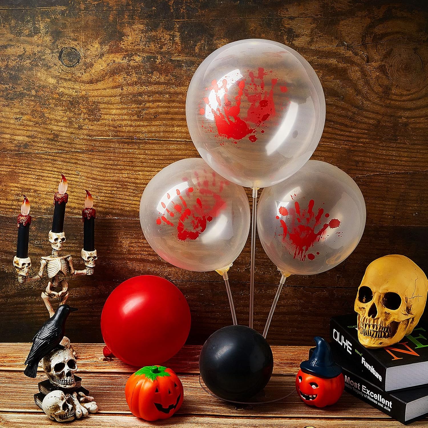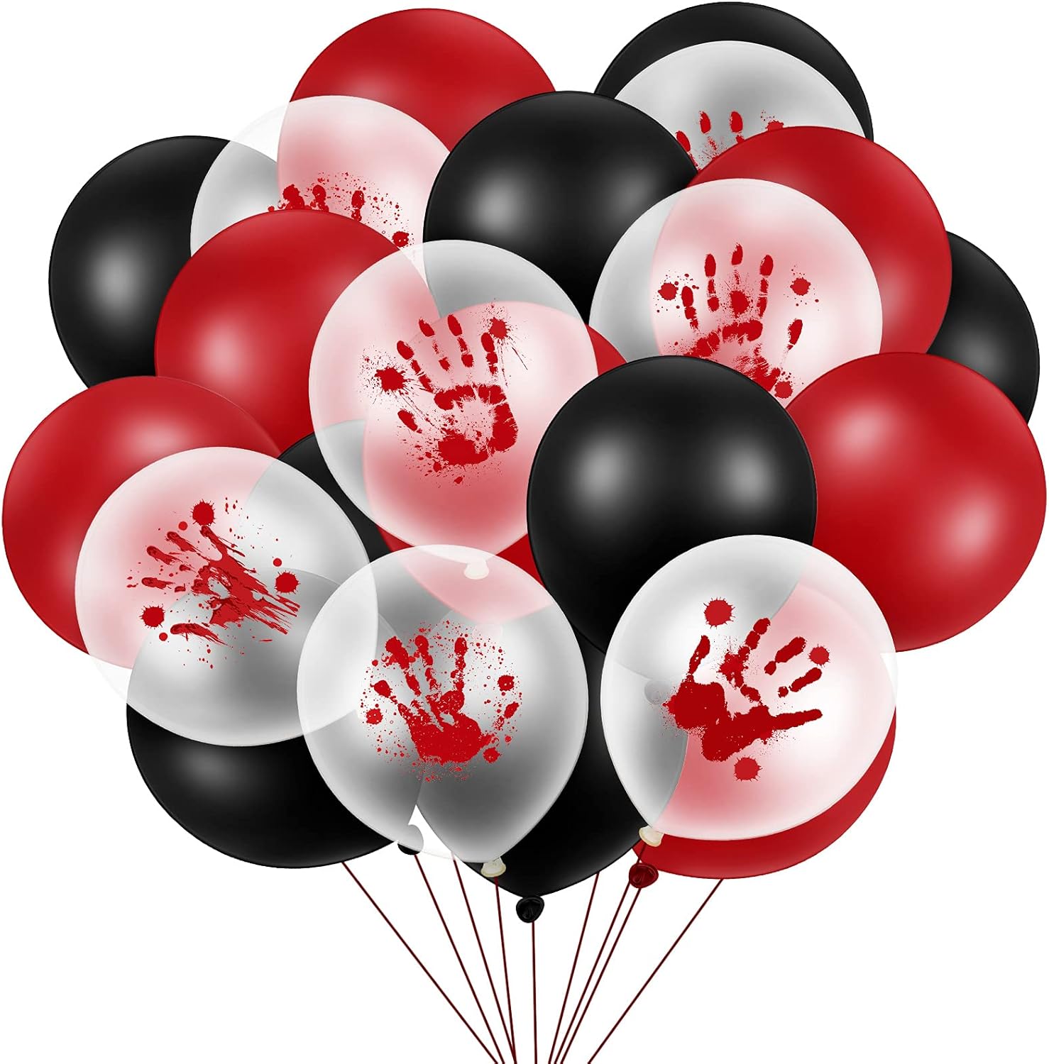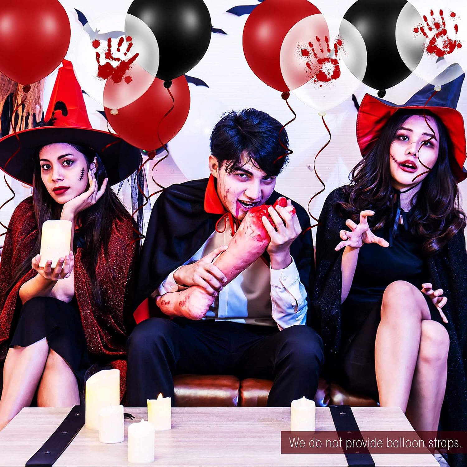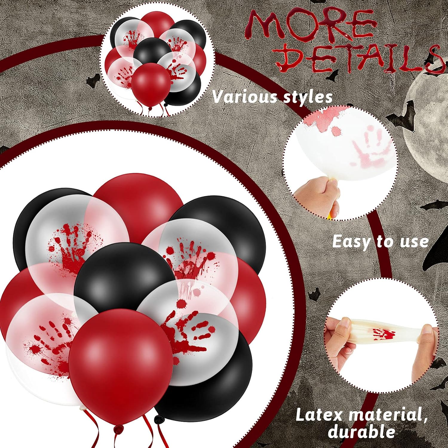 Transform your Halloween celebration into a spellbinding event with this 60-piece Zhanmai balloon set. Perfect for creating a dramatic and eerie vibe, the set includes 30 blood handprint balloons, 15 black latex balloons, and 15 red latex balloons. The handprint balloons feature realistic blood stains and palm designs, adding a unique touch that brings the spirit of Halloween to life. These balloons are crafted from high-quality, durable latex, making them safe for use and long-lasting for any occasion.