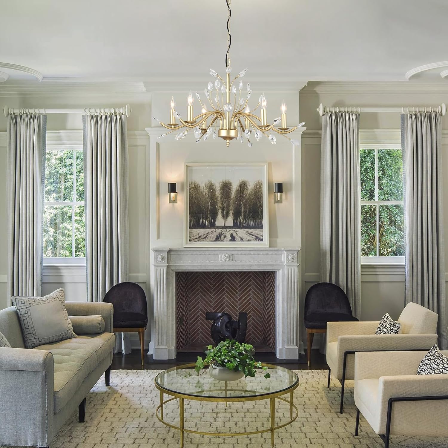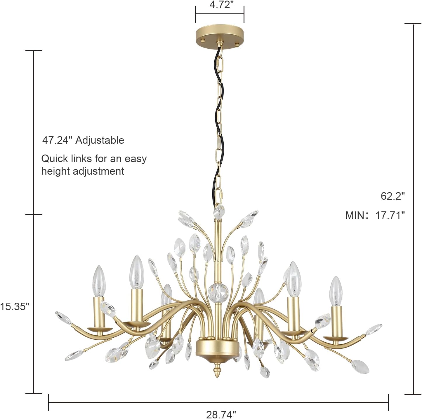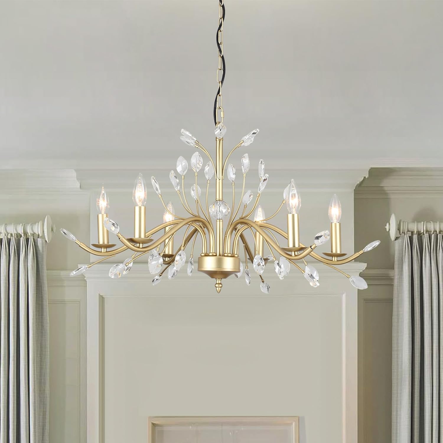 Elevate your interior style with this stunning 6-light gold vintage crystal chandelier. Blending timeless elegance with modern functionality, itâs the perfect addition to your living room, dining area, bedroom, or even a foyer.