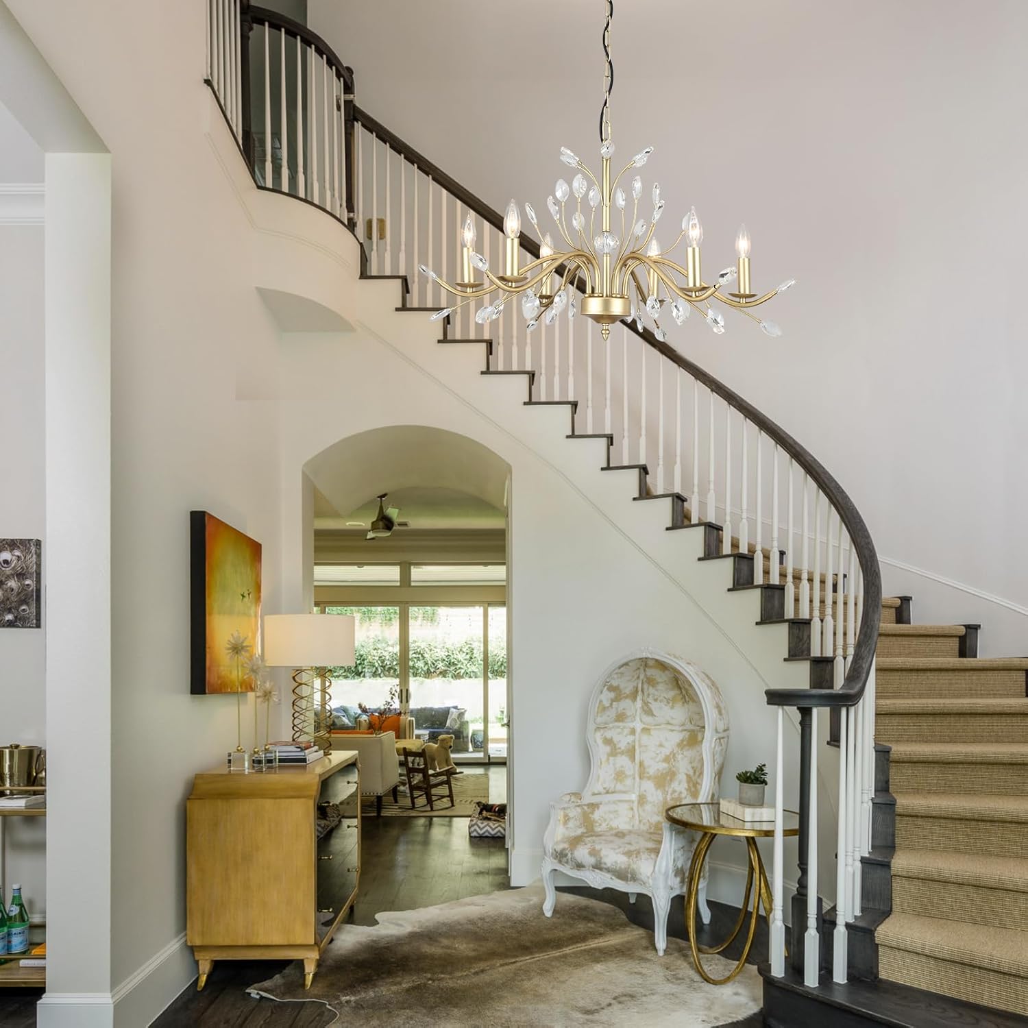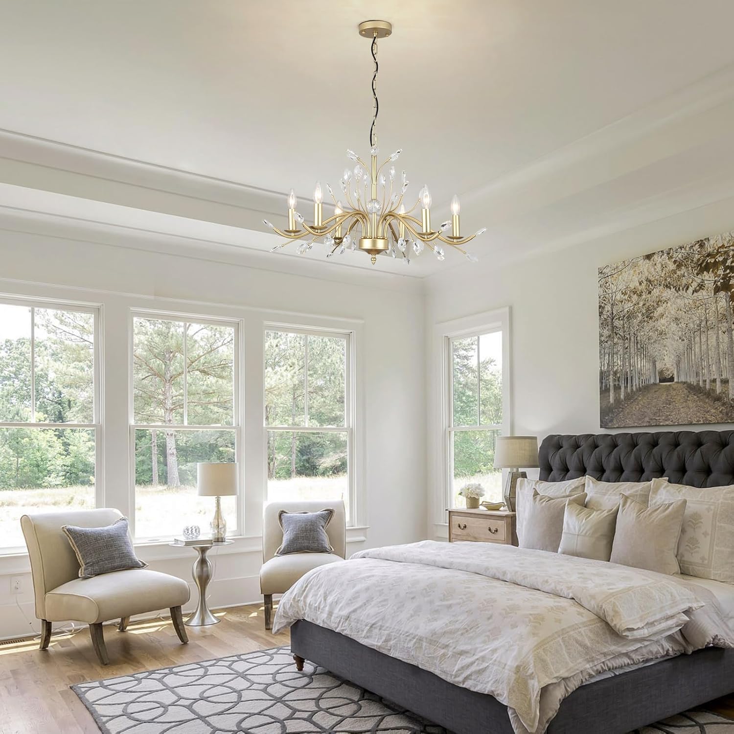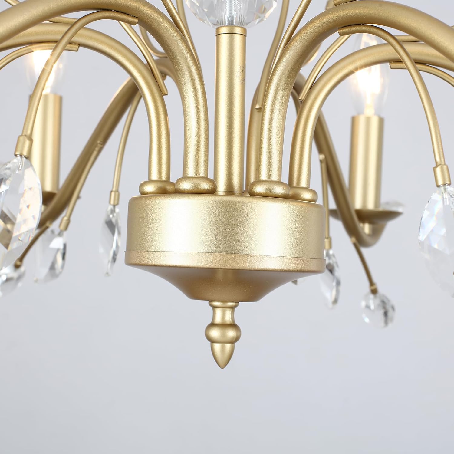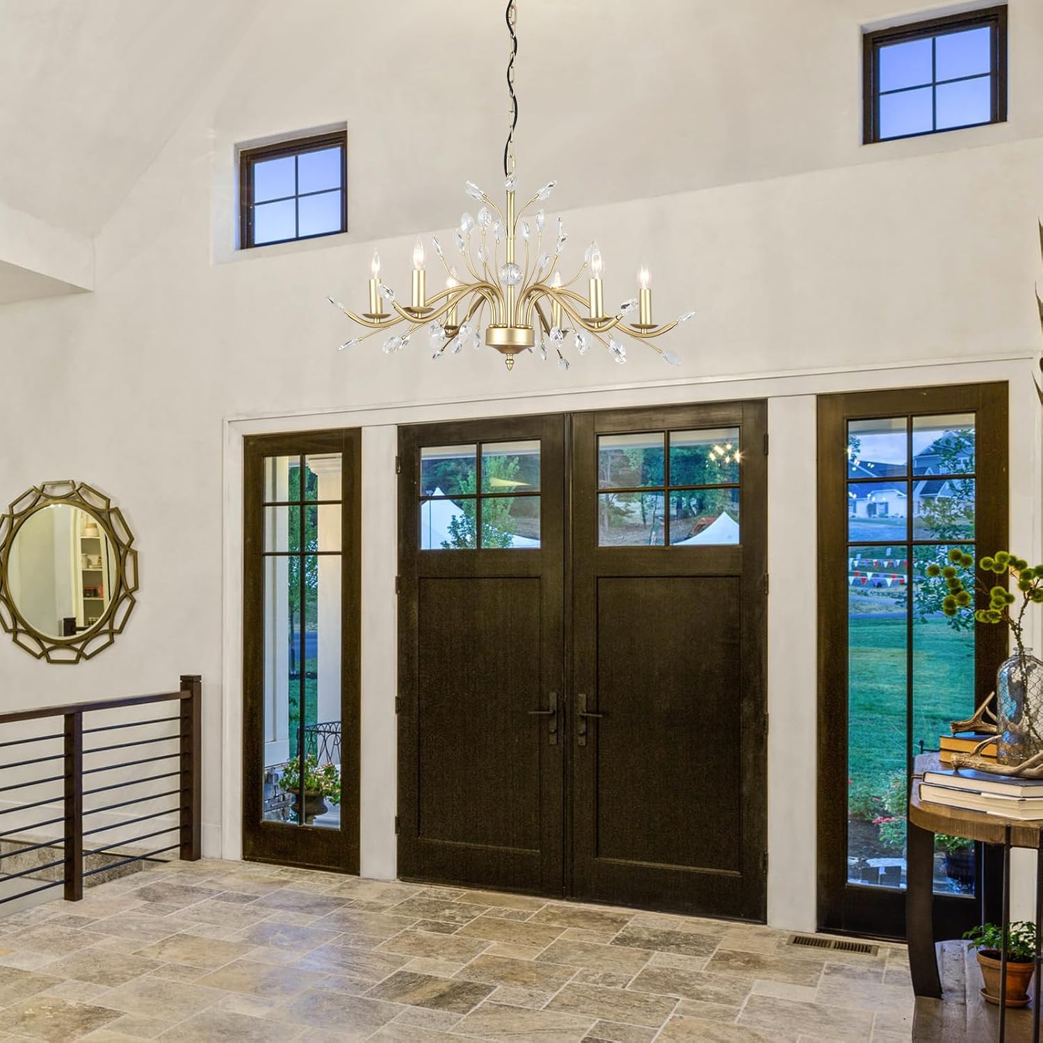 Elevate your interior style with this stunning 6-light gold vintage crystal chandelier. Blending timeless elegance with modern functionality, itâs the perfect addition to your living room, dining area, bedroom, or even a foyer.